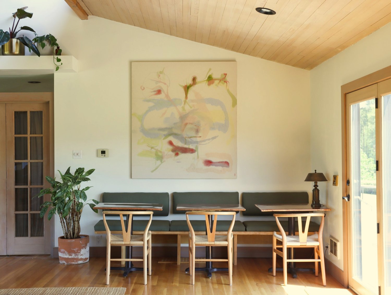 Banquette design and construction for Great Room of Sosta House. Photo by Kenna Beban.